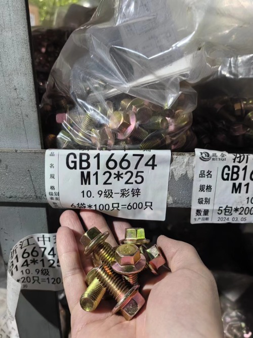 | DIN 6921 GB/T16674.56 HEX karima csavar | M12 1.25 55-10.9 | 40cr | 10.9 | Cink bevont | ≥8 μm | 72H | 6,184 | 500 |