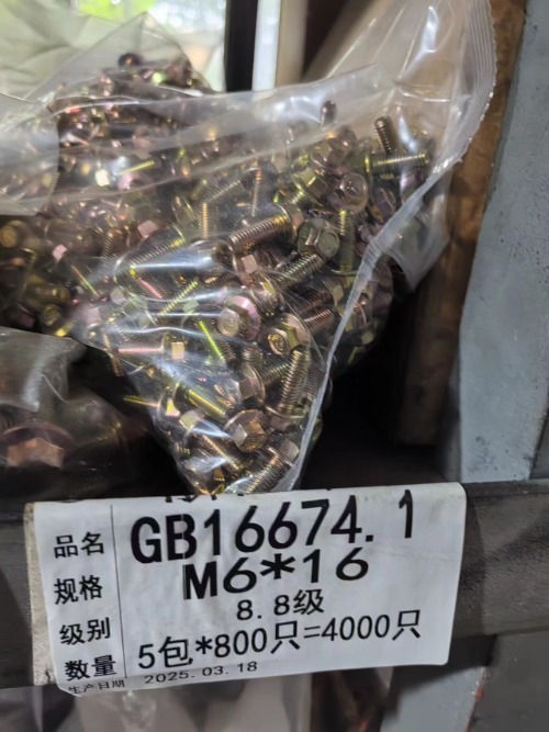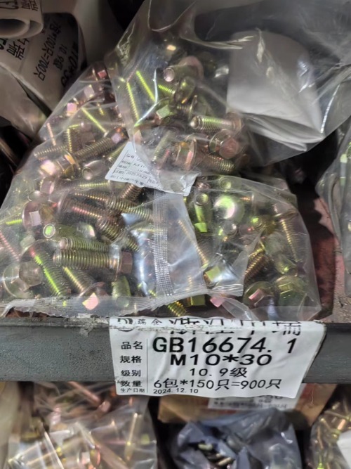 Valódi képek a raktárban található polcokról: GBT16674 DIN6291 HEX karima csavarok, különféle specifikációkkal