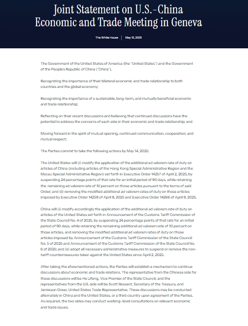 Örömmel oszthatjuk meg néhány bátorító hírt az USA-Kína gazdasági és kereskedelmi megbeszéléseiről. Mindkét fél közzétette a közös nyilatkozatot, hangsúlyozva a gazdasági és kereskedelmi kapcsolatok előmozdítását a nyílt kommunikáció, a folyamatos együttműködés és a kölcsönös tisztelet előmozdítása mellett.